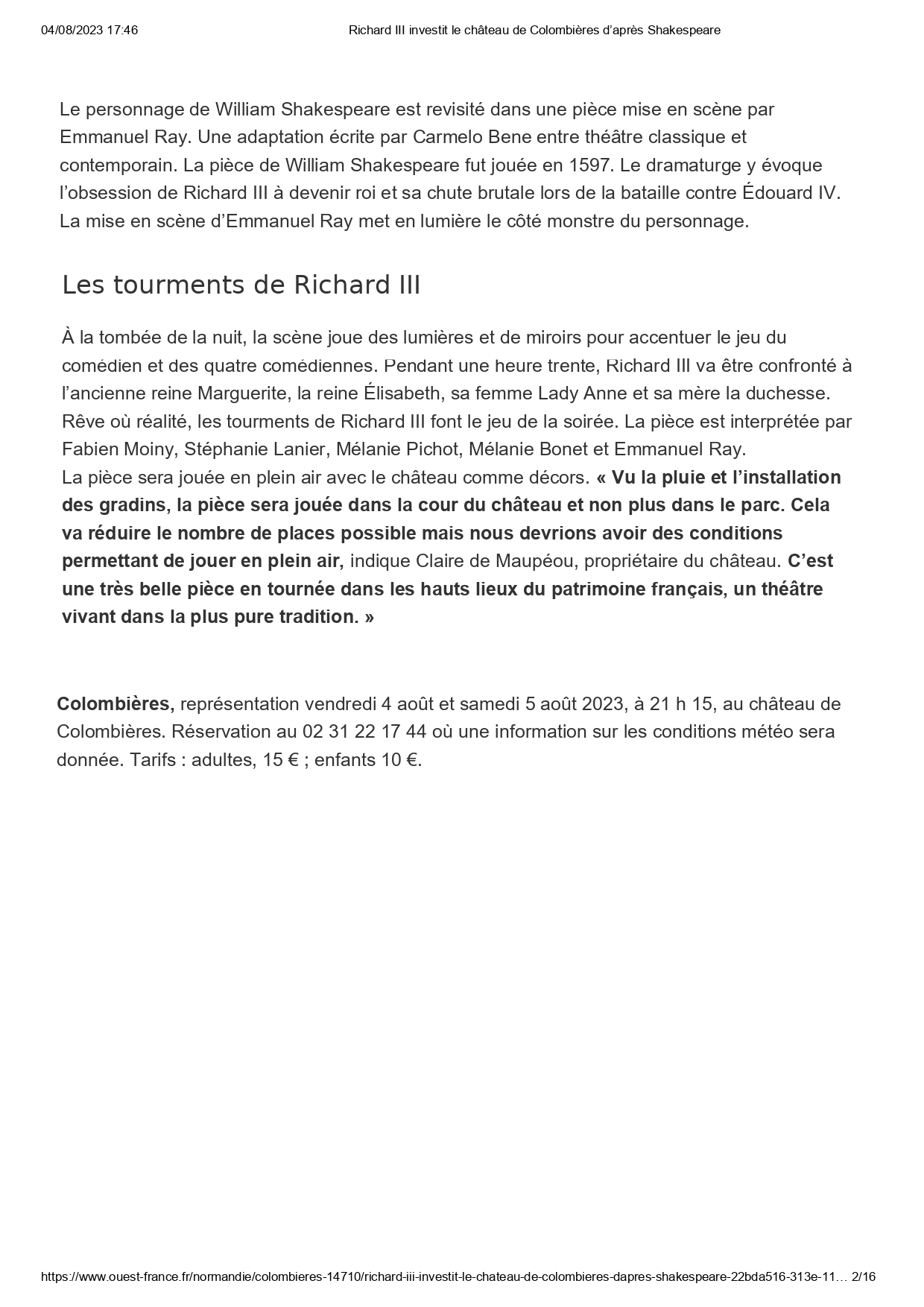 Richard III investit le château de Colombières